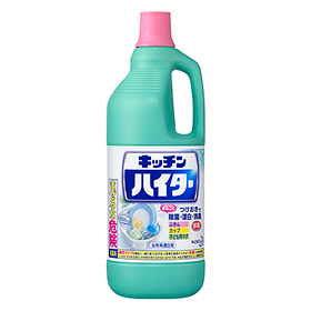 詳細情報 品名 台所用漂白剤 液性 アルカリ性 成分 次亜塩素酸ナトリウム(塩素系)、界面活性剤(アルキルエーテル硫酸エステルナトリウム)、水酸化ナトリウム(アルカリ剤) 【使えるもの】 白物(色・柄のない)のふきん・おしぼり、プラスチック製品(メラミン除く)、シリコン製品、ナイロン製品、人工大理石、陶器、ガラス器、木・竹製品 ★樹脂、せんいの中まで入ったシミ、黒ずみは取れない場合がある。 ★せんいや材質自体が黄変したものは、漂白剤でも元に戻らない。 ★材質が不明なもの・木製品は変色することがあるので、目立たない場所で確認してから使う。 【使えないもの】 色物・柄物のせんい製品、金属製の容器・用具、メラミン食器、漆器、獣毛のハケ、水洗いできない製品や場所、食品、塩素系は使えないと表示にあるもの。 【使用上の注意】 必ず使用前に使い方と使用上の注意をよくお読みください。 体調のすぐれない方は使用しないでください。 ※本品を[キッチン泡ハイター]のスプレー容器につめかえないでください。(「泡」にならず液が飛び散り危険です。) ●用途外に使わない。 ●誤飲を防ぐため、本品および漂白中の食器の置き場所・取り扱いに注意する。 ●原液で使わない。 ●熱湯で使わない。 ●容器を強く持ってキャップを開けると原液が飛び出すおそれがあるので注意する。 ●液が目や皮ふ、衣類につかないよう注意する。 ●使用する時は炊事用手袋を使う。 ●他の洗剤等と併用しない。 ●酸性タイプの製品や塩素系の排水口ヌメリ取り剤・生ごみ・食酢・アルコールと混ざらないようにする。有害なガスが発生して危険。 ●水や他のものを入れたり、他の容器につめかえたりしない。破裂することがある。 ●酸素系漂白剤と併用すると効果が落ちる。 ●衣類や敷物や家具に液がつくと脱色するので注意する。 ●直射日光を避け、高温の所に置かない。 ●酸性タイプの製品と一緒に使う(まぜる)と有害な塩素ガスが出て危険。 ●液が目に入ったら、すぐ水で洗う。 ●子供の手にふれないようにする。 ●必ず換気をよくして使用する。 【応急処置】 ●目に入った時は失明のおそれがある。こすらずただちに流水で15分以上洗い流し、痛みや異常がなくても直後に必ず眼科医に受診する。 ●飲み込んだ時は、吐かずにすぐ口をすすぎ、コップ1~2杯の牛乳か水を飲む等の処置をし、医師に相談する。 ●皮ふについた時は、すぐに水で充分洗い流す。異常が残る場合は皮ふ科医に相談する。 ●使用中、目にしみたり、せき込んだり、気分が悪くなった時は使用をやめてその場から離れ、洗眼、うがい等をする。 ※いずれも受診時は商品を持参する。