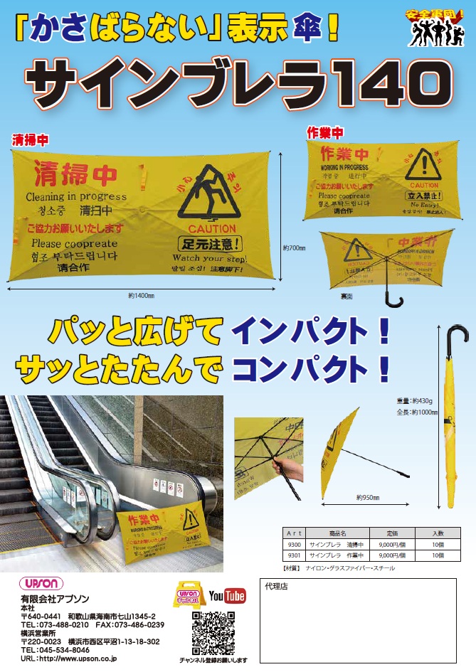アプソン サインブレラ140(清掃中/作業中)かさばらない表示傘!
