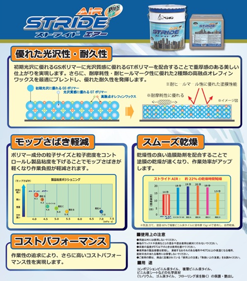 ◎ポリマー成分の粒子サイズを調整し粘度を下げ、モップさばきが軽くなりました。