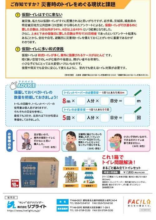 いざという時に必要なトイレ用品が「まるごと」入っています!